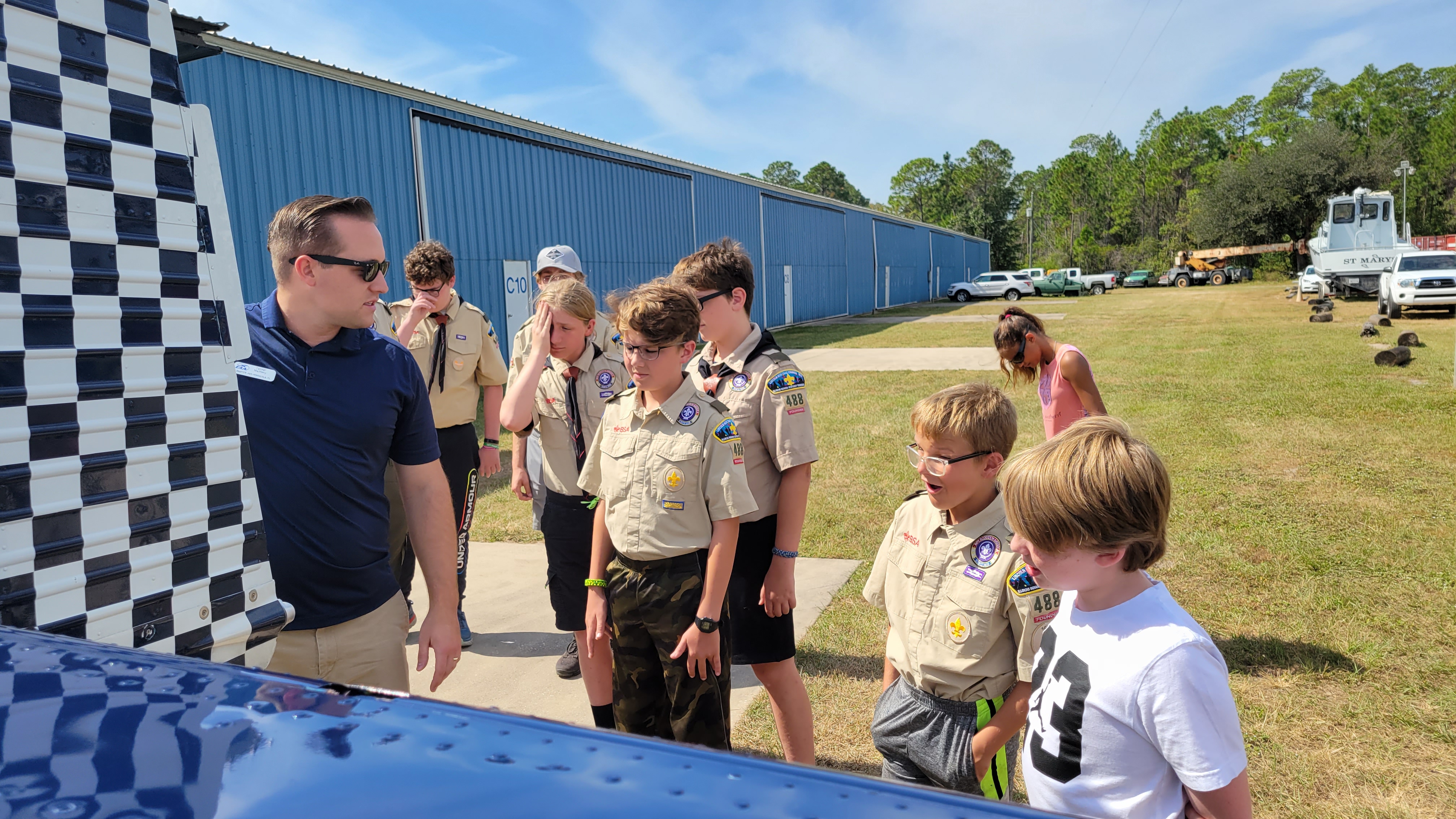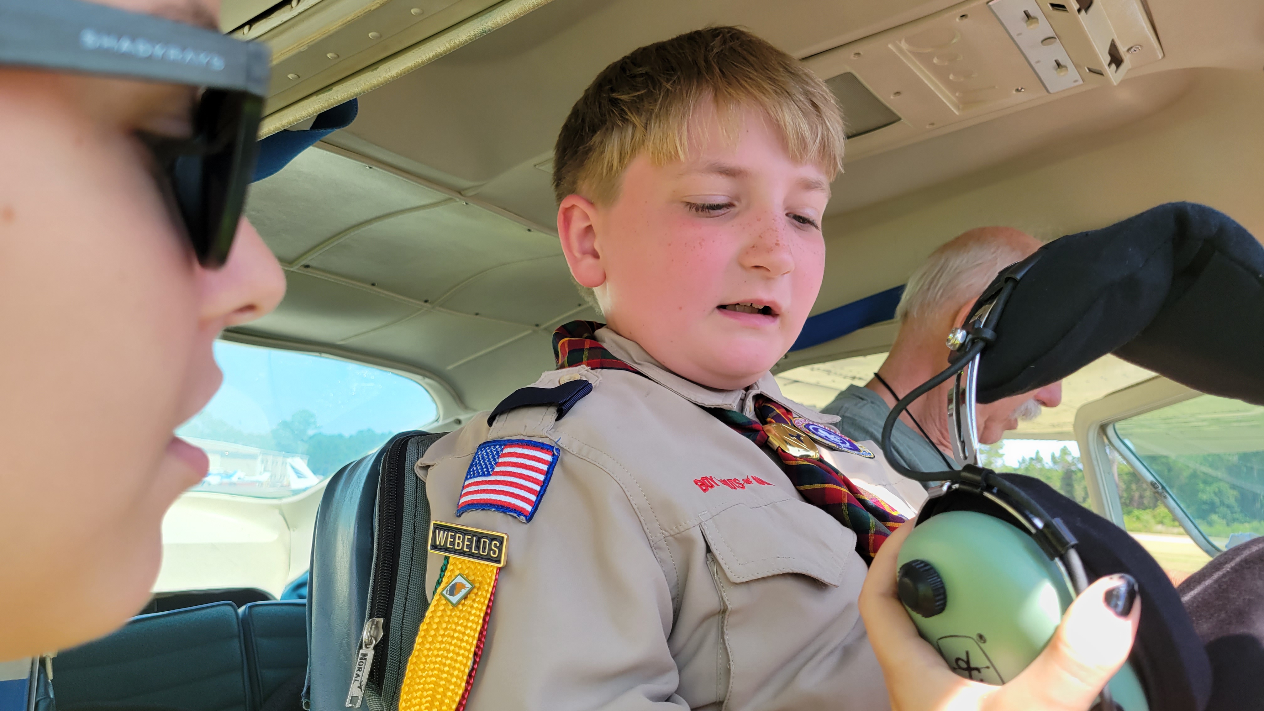 We started off the day with a thorough preflight demonstrated by our Young Eagles coordinator Tanner Matheny. He explained how critical it is to conduct a thorough preflight inspection. After that, each Boy Scout received a flight by a Young Eagles Volunteer Pilot. All the scouts were very appreciative and enjoyed their day!