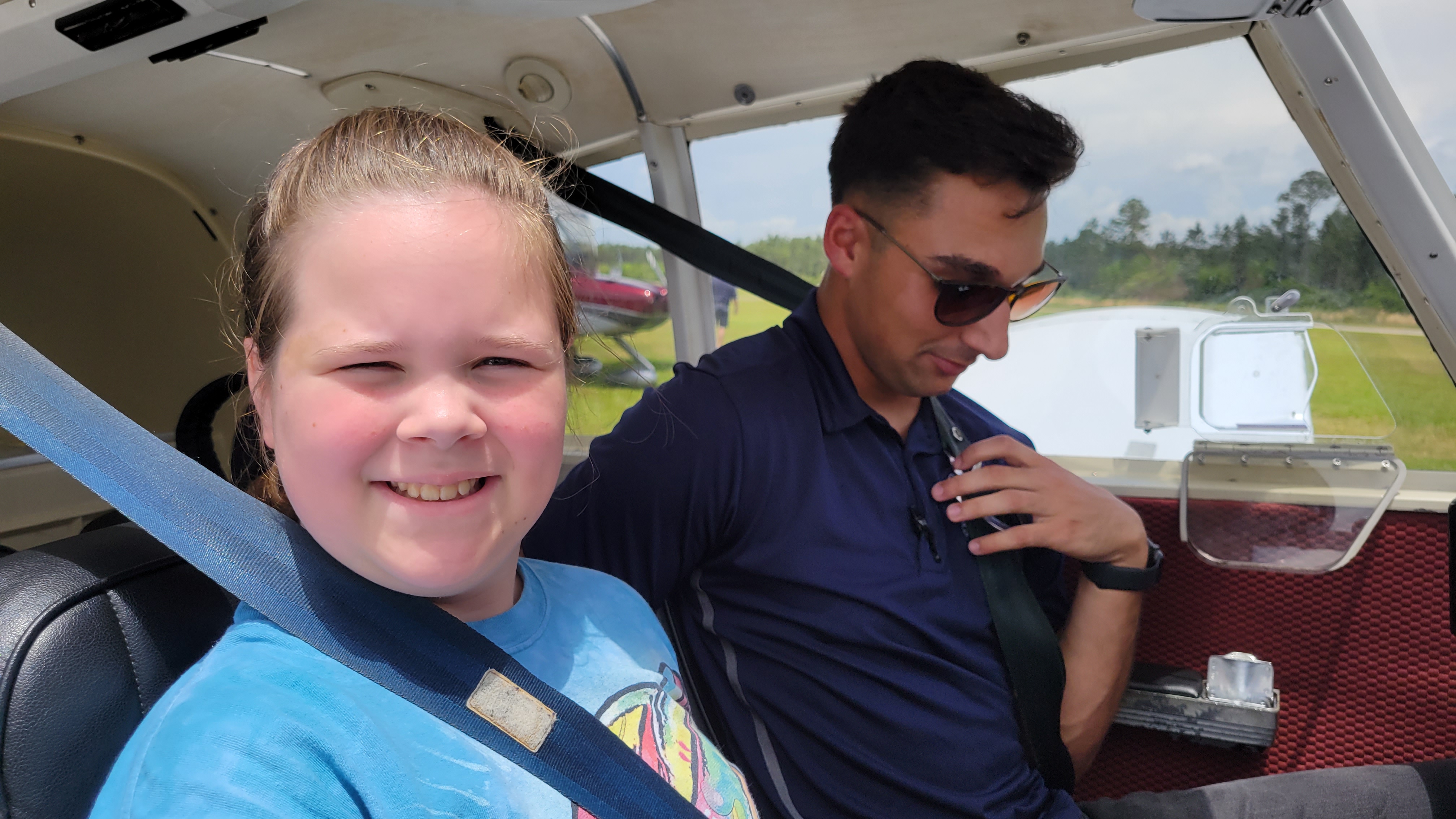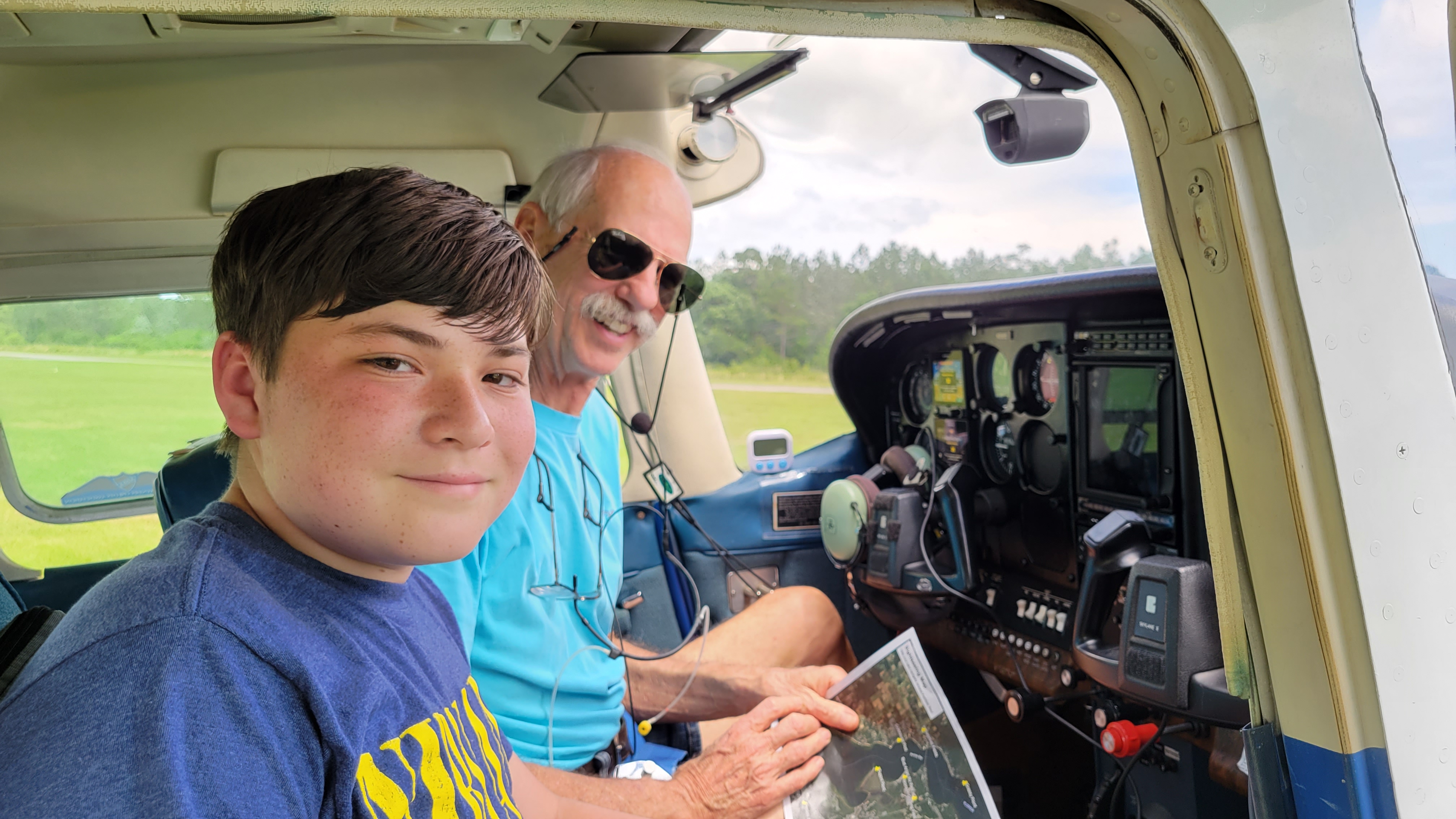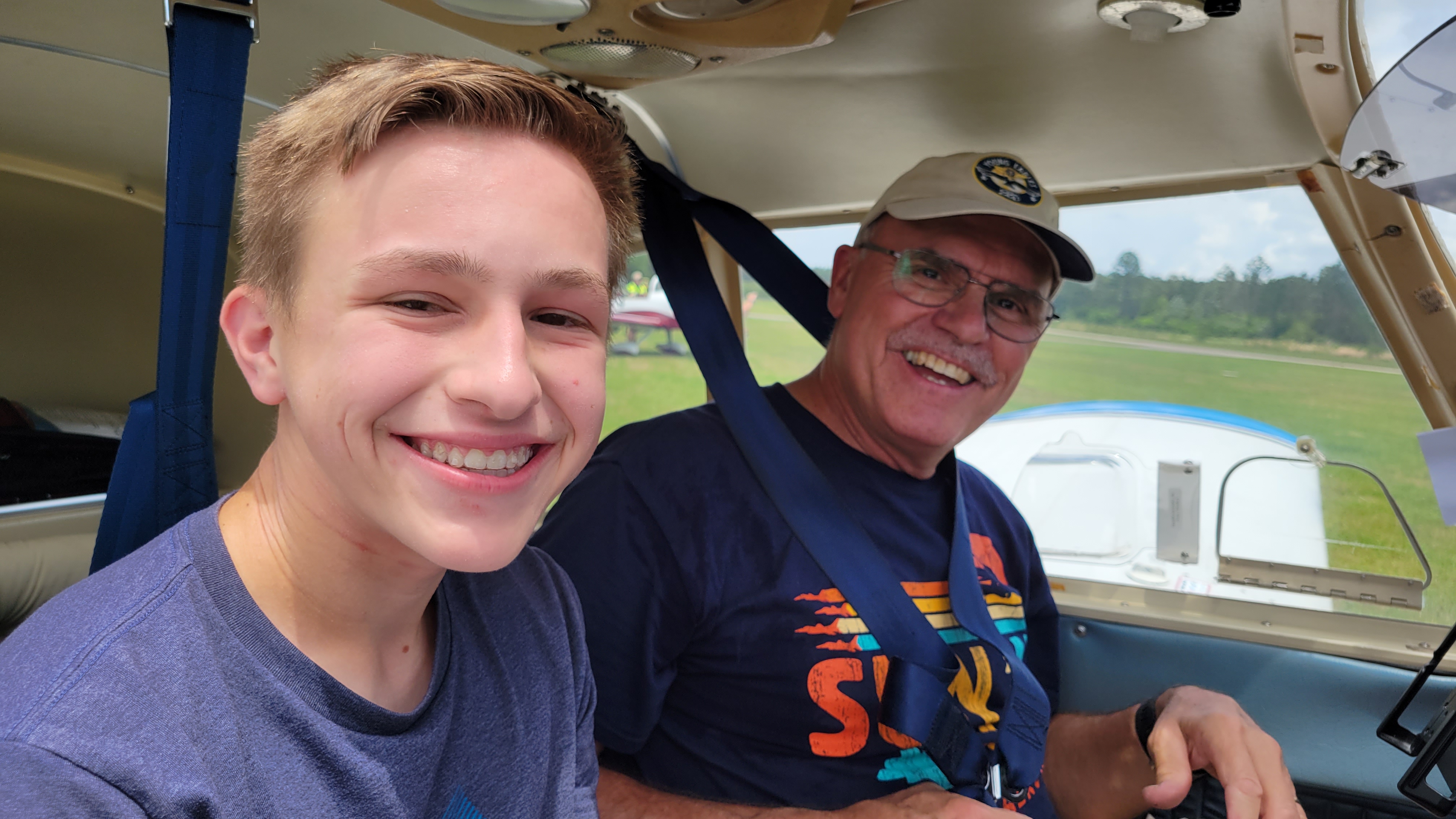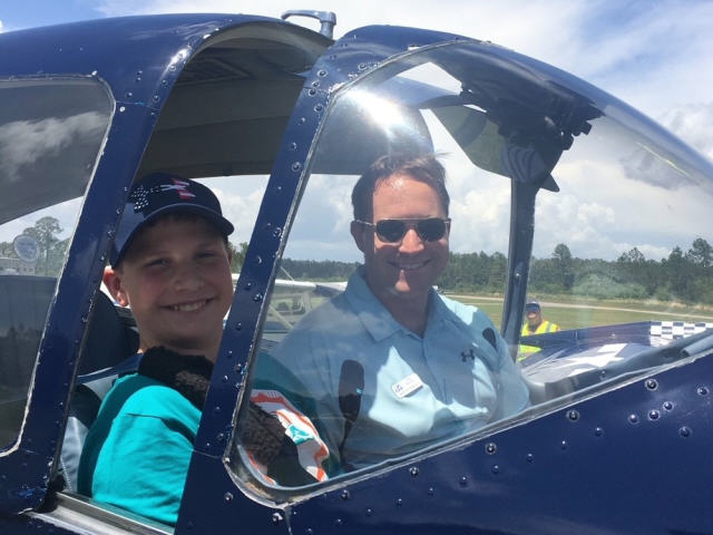 ![]() Nick Hanssen (one of our Ray Scholarship recipients and young Eagles Flight Certificate holder) using his Private Pilots license to pay it forward to a Young Eagle. |