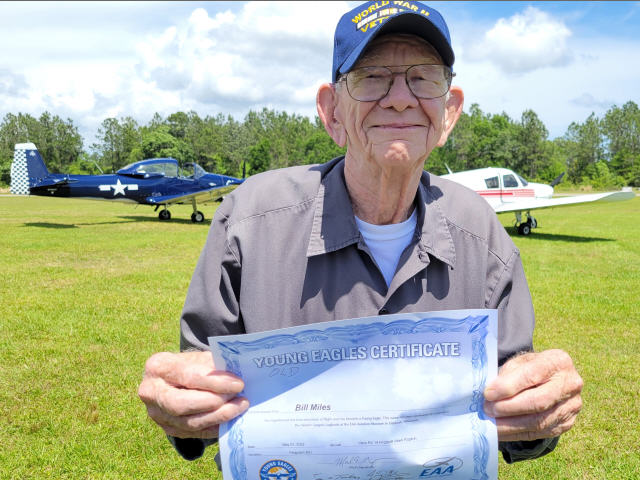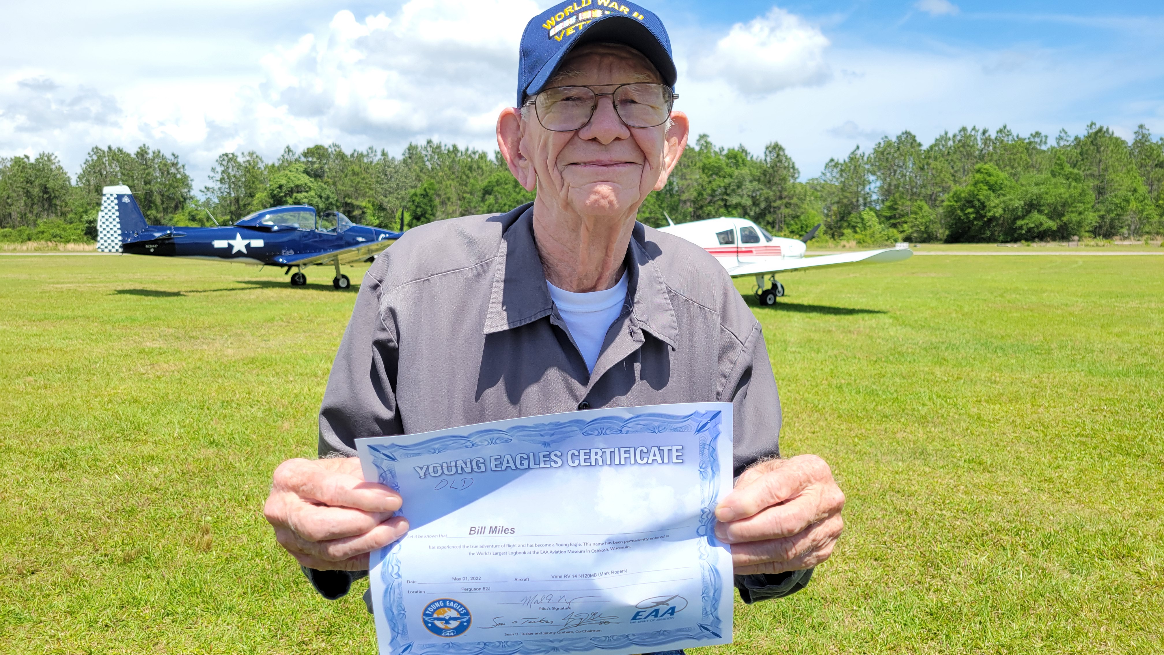 ![]() Captain Bill Miles, one of our senior EAA 485 Members at 97 years old receives his "Old" Eagles Certificate courtesy of Mark Rodgers |