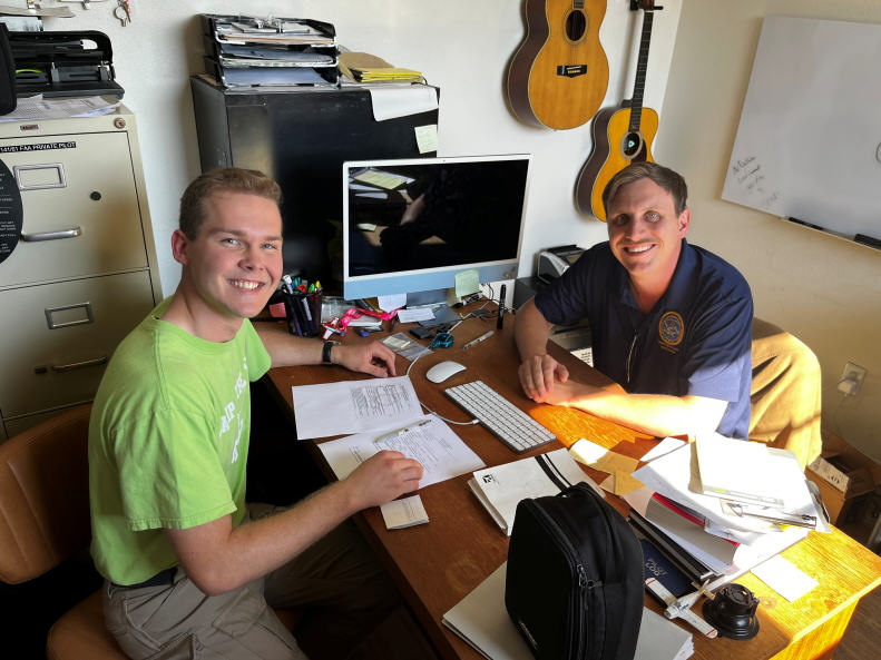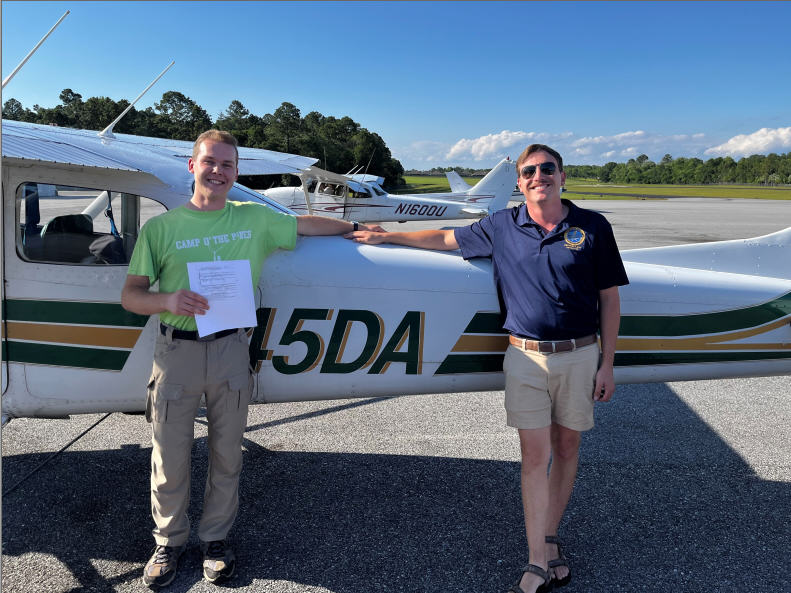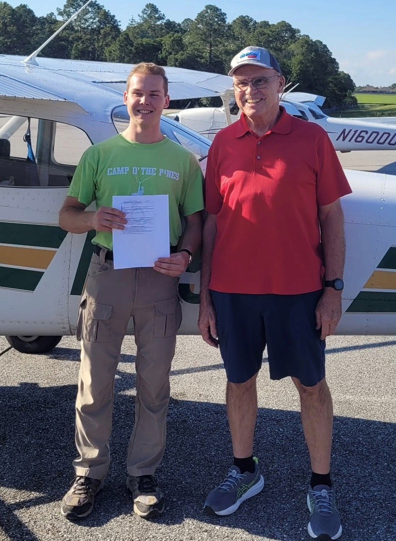 and DPE Corey Kirkwood with just-awarded Private Pilot Certificate, 5-13-25.