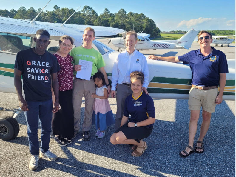 and his entire family celebrate the occasion at Foley Airport.
